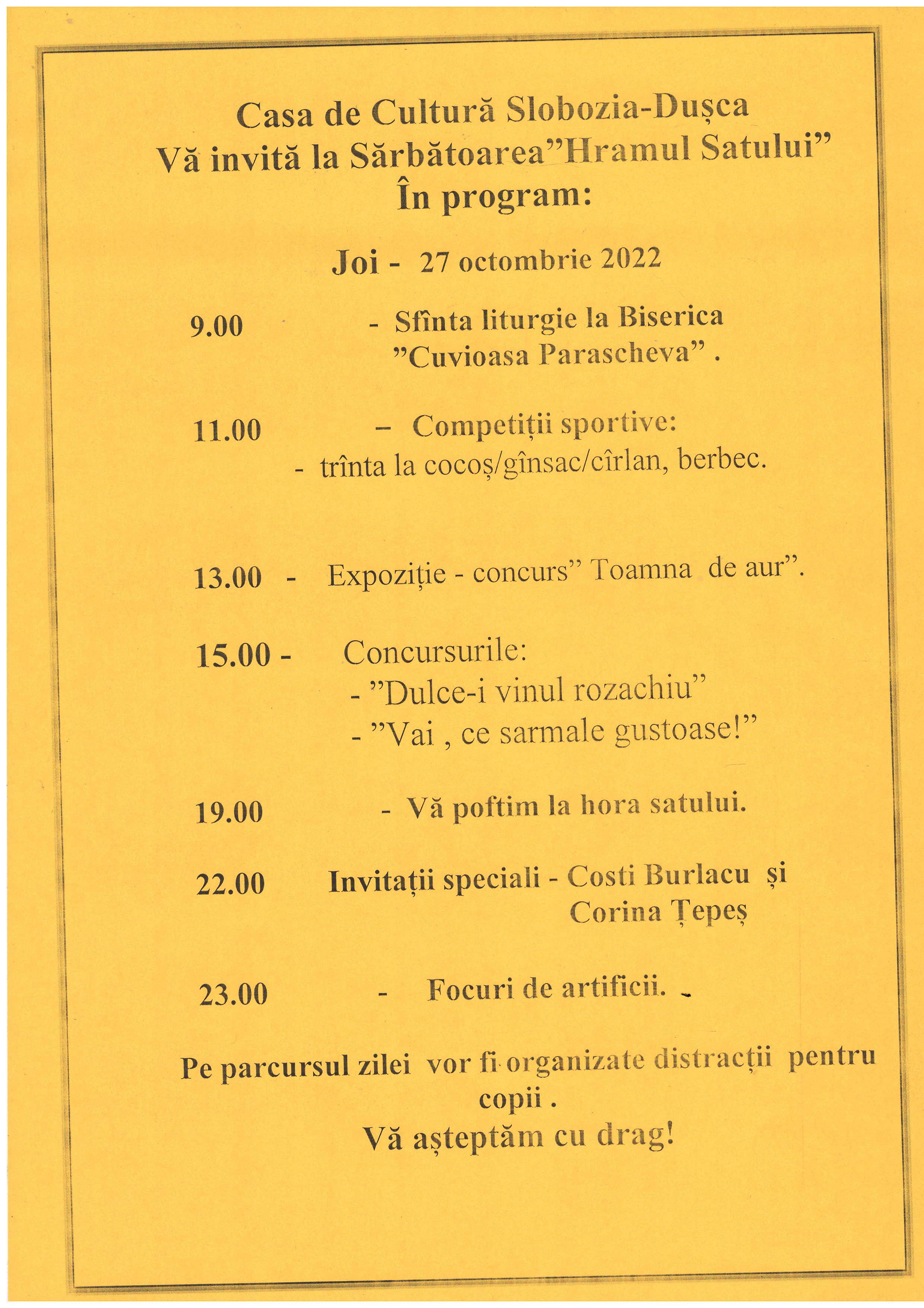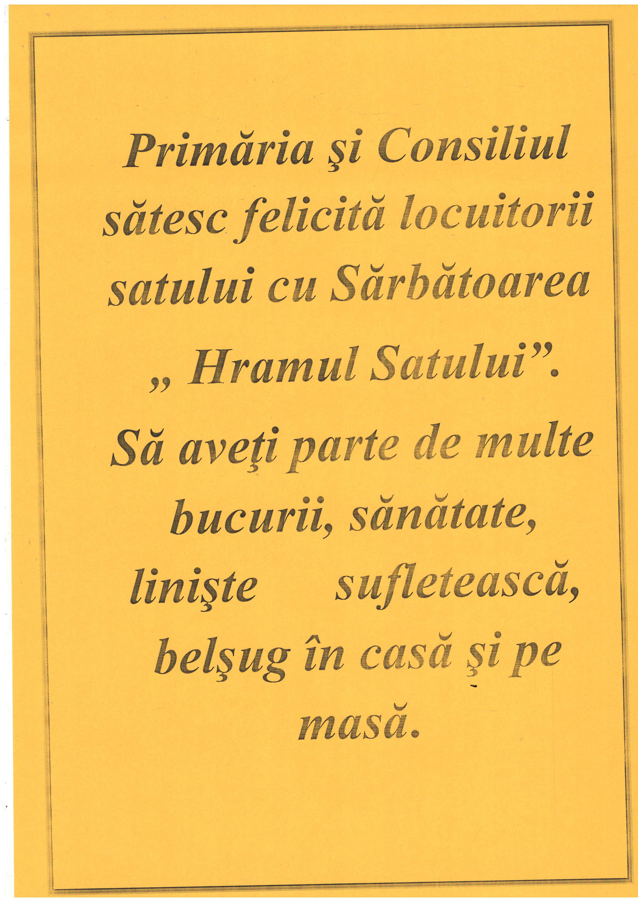 VĂ felicităm cu sărbătoarea „Hramul Satului”