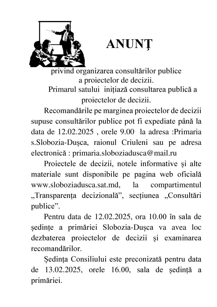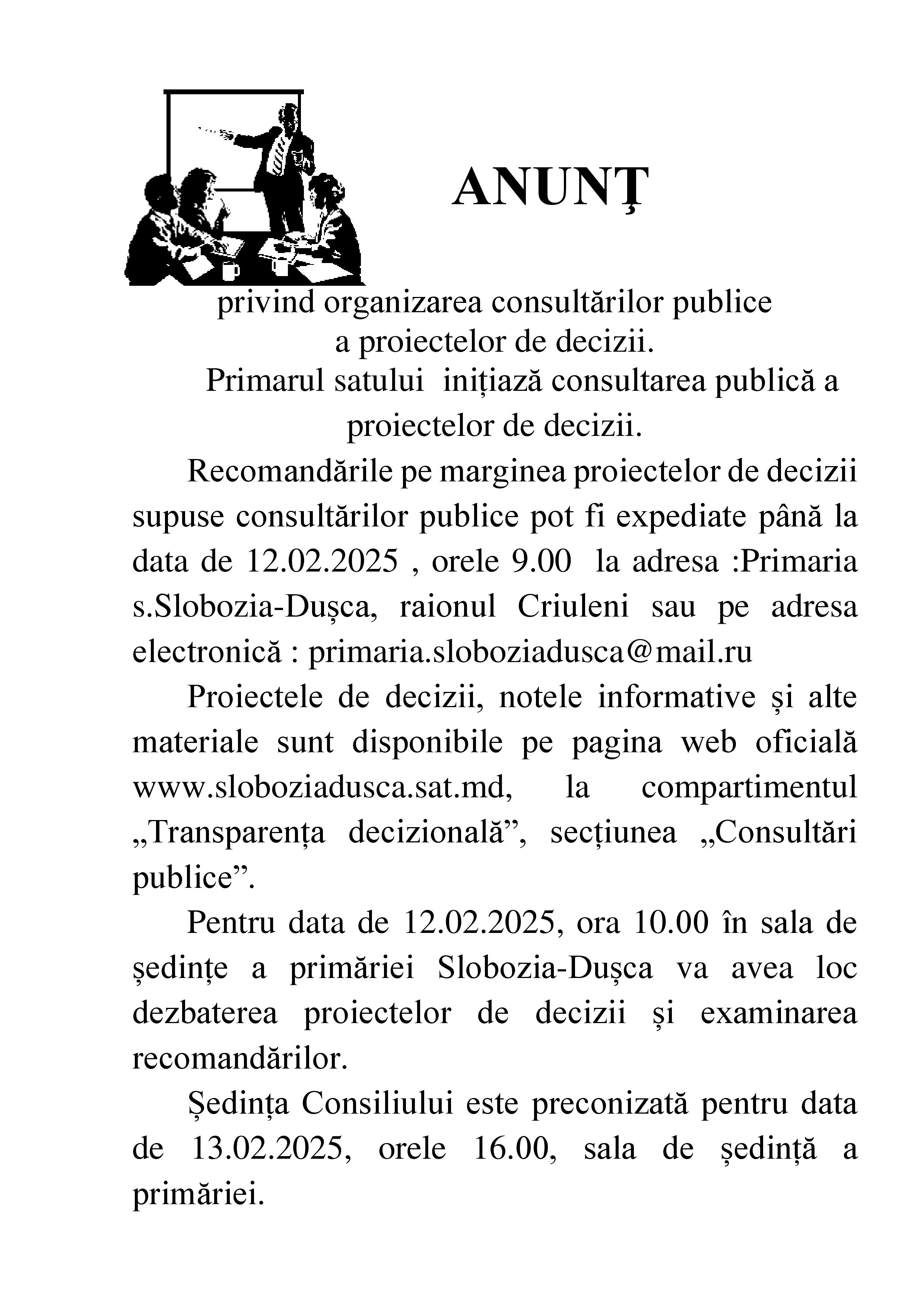 Anunț privind organizarea consultărilor publice