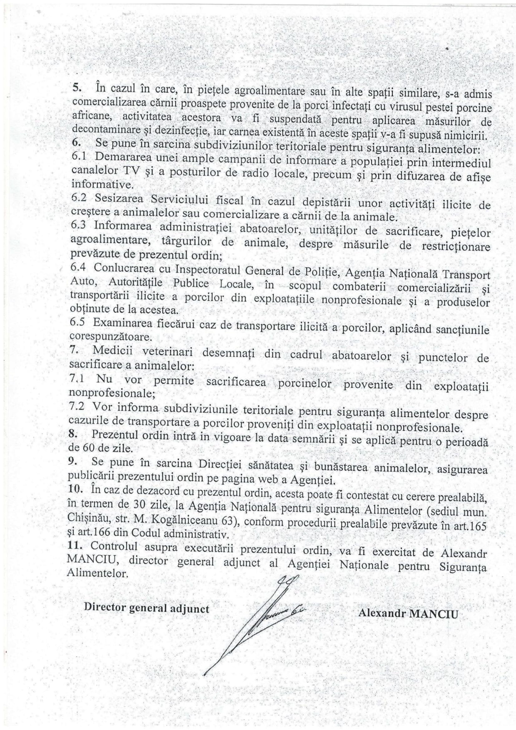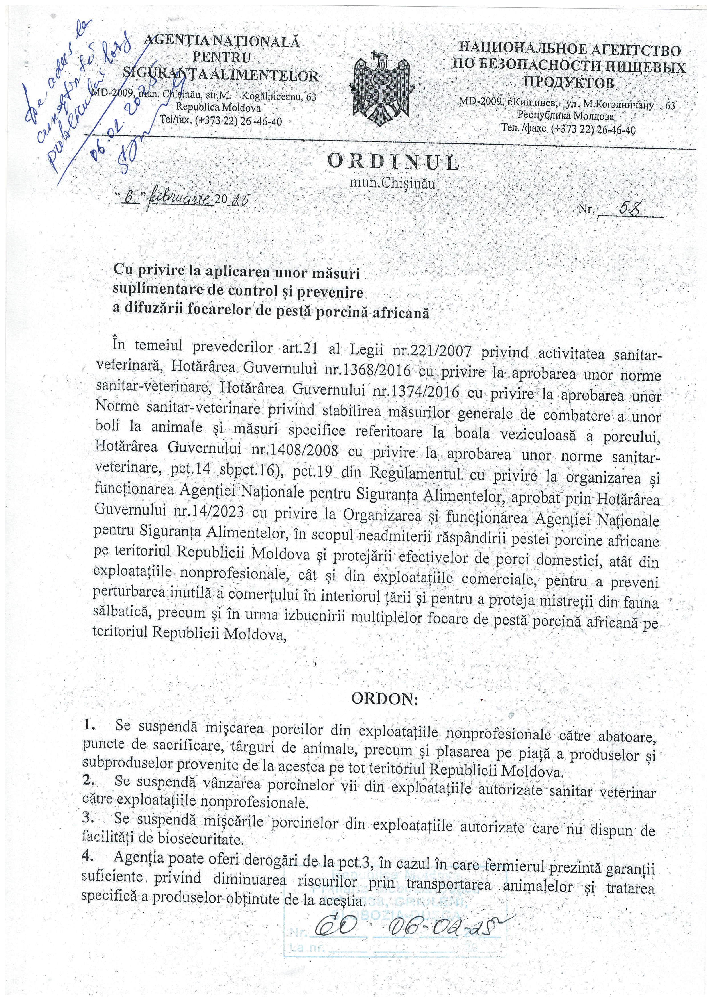 Ordinul ANSA cu privire la aplicarea unor măsuri suplimentare de control și prevenire a difuzării focarelor de pestă porcină africană